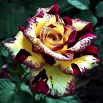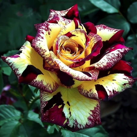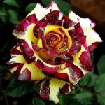 Wyjątkowa odmiana róży herbatniej z unikalnymi, wielobarwnymi kwiatami – ciemnoczerwone płatki z żółtymi lub kremowymi paskami i plamami. Duże, intensywnie pachnące kwiaty. Krzew osiąga 80–100 cm wysokości. Idealna do ogrodu i na kwiat cięty, przyciąga egzotycznym, „magicznym” wyglądem.