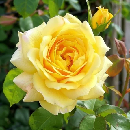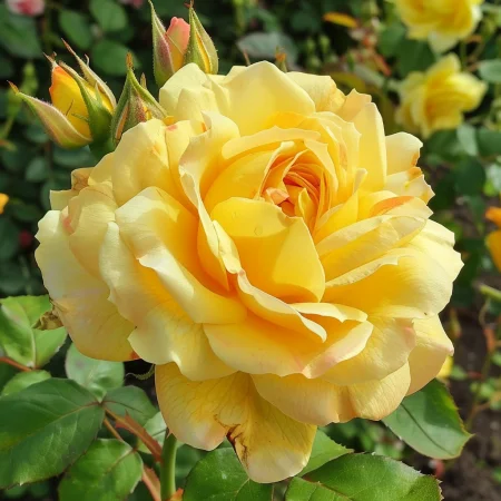 Klasyczna odmiana róży herbatniej o jaskrawożółtych, pachnących kwiatach, które mogą lekko blednąć do kremowego pod silnym słońcem. Kwiaty średniej wielkości, z licznymi płatkami, zebrane w gęste kwiatostany. Roślina zdrowa, z wyprostowanymi łodygami i zwartą formą (60–80 cm), odpowiednia do ogrodów i cięcia na bukiety. Kwitnie obficie przez całe lato w słonecznym miejscu i na dobrze przepuszczalnej glebie.