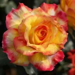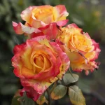 Różnorodna odmiana o obfitym i powtarzającym się kwitnieniu, z drobnymi do średnich kwiatami w żółtym kolorze z jaskrawoczerwonymi końcówkami – efektowna i odpowiednia do dekoracji łuków, ogrodzeń i pergoli.
