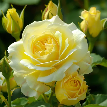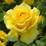 Pnąca róża o dużych, puszystych kwiatach w złoto-żółtym kolorze. Charakteryzuje się bujnym wzrostem, długimi pędami i obfitym kwitnieniem latem. Idealna do ozdoby ogrodzeń, pergoli i ścian, łącząc wartość dekoracyjną z przyjemnym zapachem i dobrą odpornością.