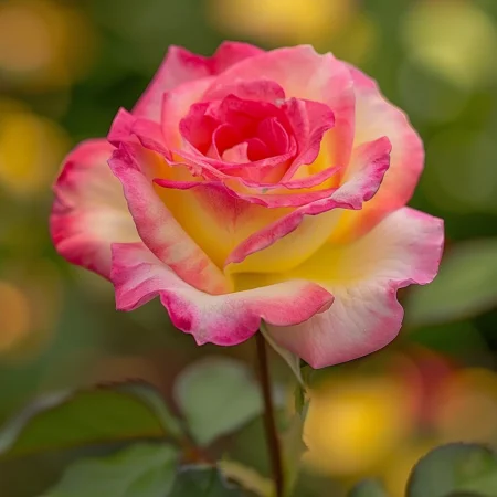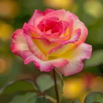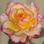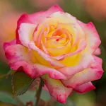 Kompaktowa, dekoracyjna róża z eleganckimi, półpełnymi kwiatami w miękkich pastelowych odcieniach. Charakteryzuje się delikatnym aromatem i długotrwałym kwitnieniem, idealna do ogrodów, donic i bukietów. Jej liście są ciemnozielone i błyszczące, co pięknie kontrastuje z delikatnymi kwiatami.