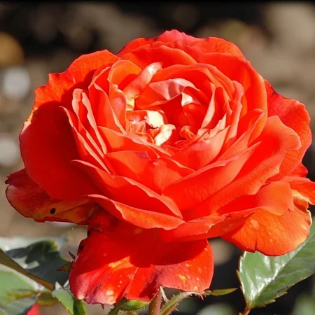 Imponująca mini róża o ognistym odcieniu i ciepłym, promiennym blasku. Idealna do miejsc, gdzie chcesz mocny kolorystyczny akcent i żywą, energetyczną atmosferę.