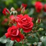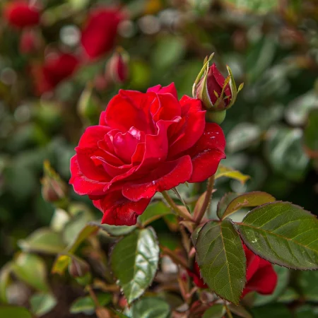 Efektowna mini róża o jaskrawoczerwonych kwiatach i świeżym, żywym wyglądzie. Idealna do kompozycji kwiatowych, obwódek i donic, gdzie szukasz intensywnego i przyciągającego uwagę akcentu.